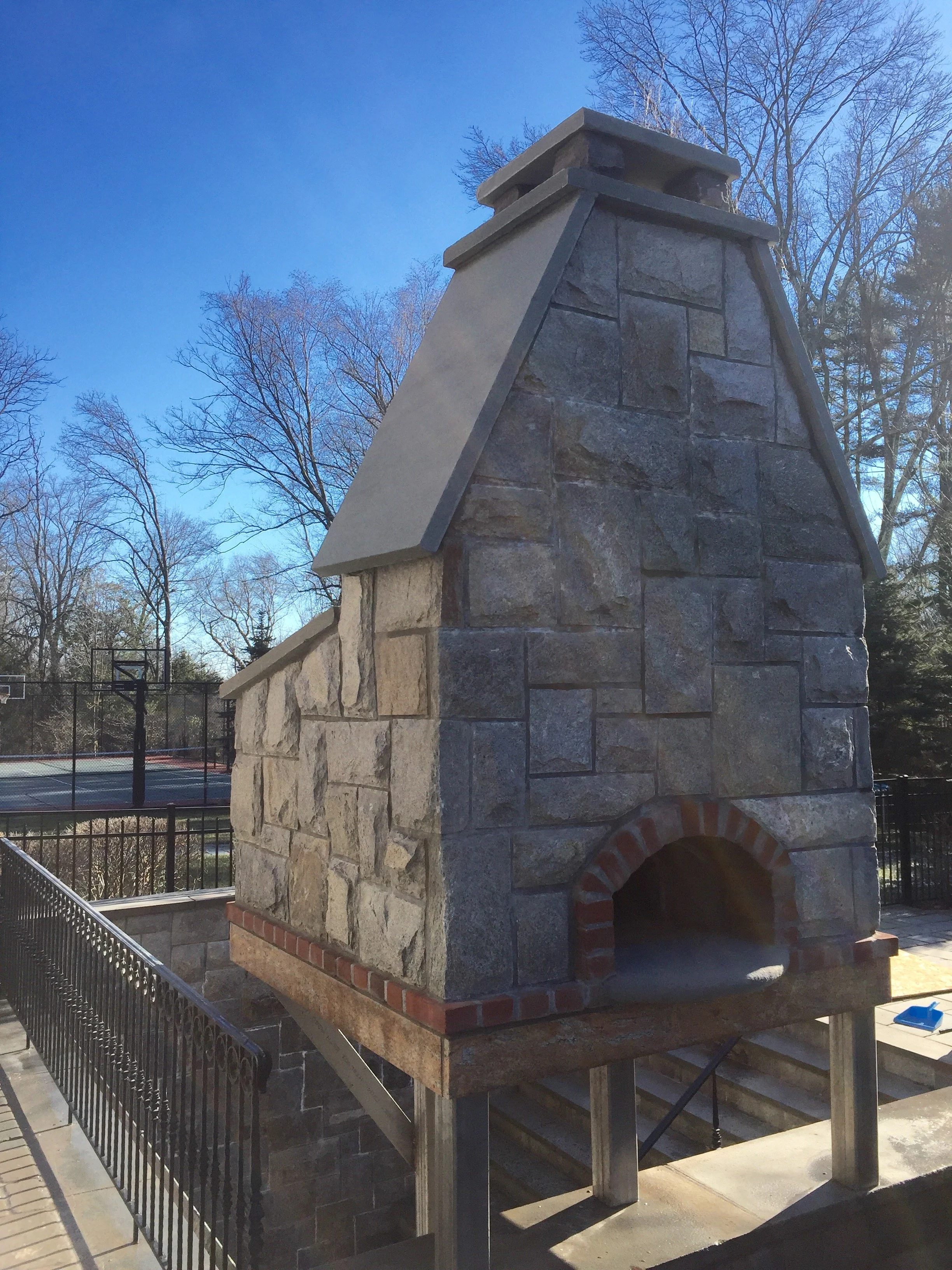 This handcrafted outdoor pizza oven in Greenwich, CT is both a functional culinary feature and a stunning stonework centerpiece. Clad in Greenwich Blues Granite, the oven showcases a rich blend of deep grays, soft blues, and subtle mineral accents—perfectly suited to the natural surroundings and upscale outdoor living spaces of the area.